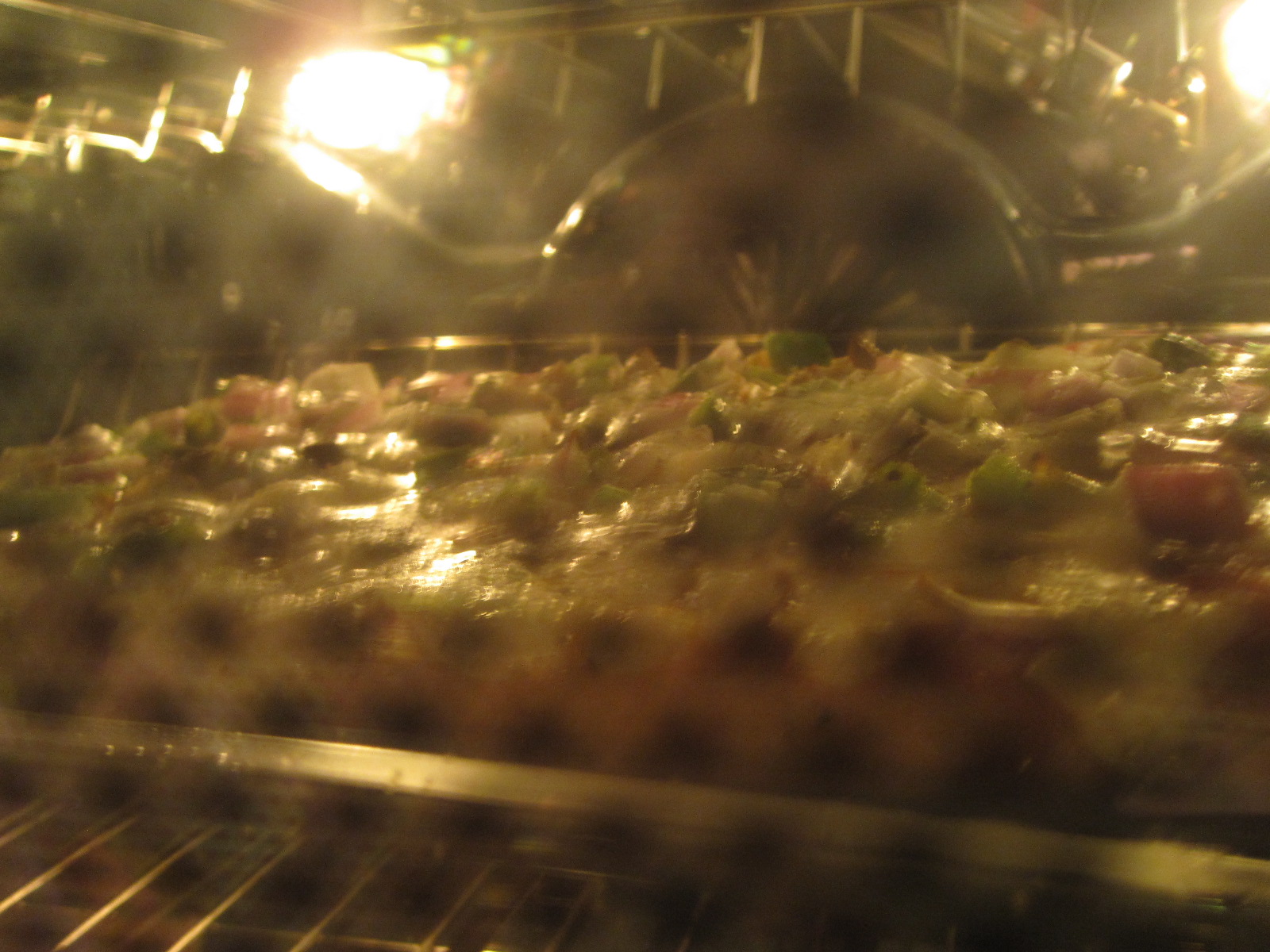 9. in the case that you put too much cheese, for your poor oven’s sake, please make sure there is room on the pan for the cheese to melt around the pizza. its ok if this happens though, those crispy bits of cheese are GOOD.