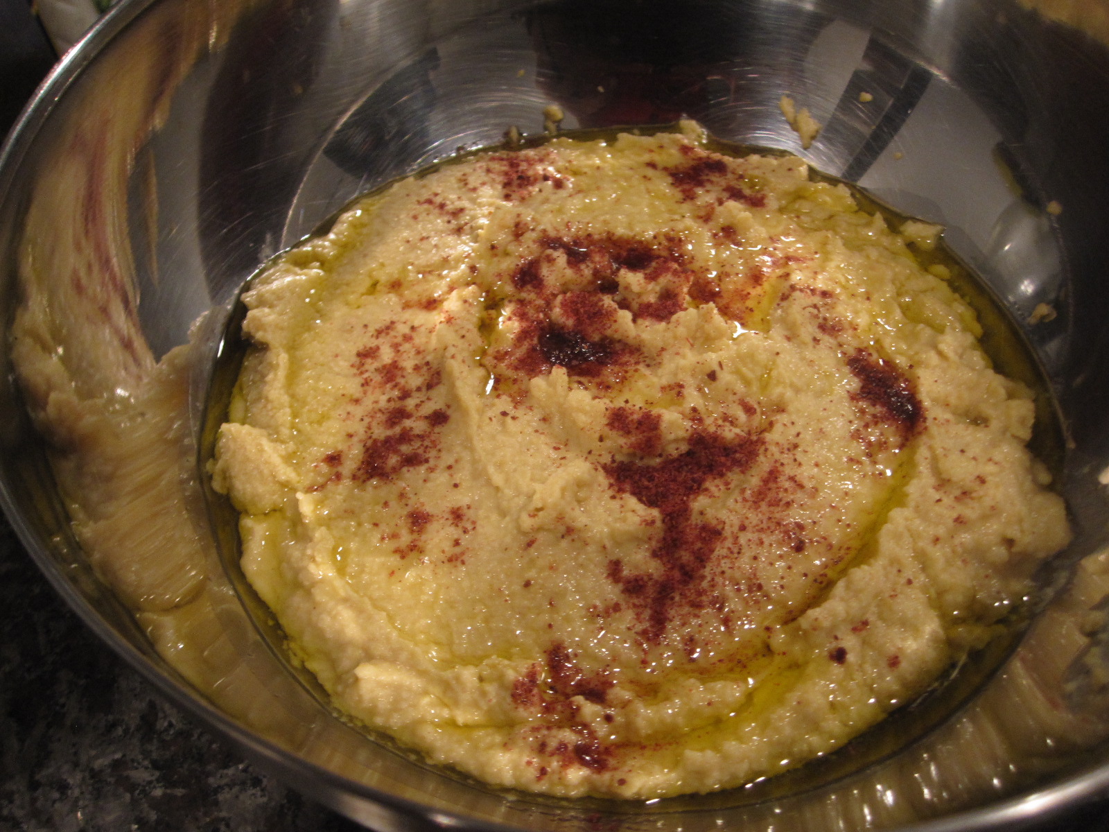it didn’t come out as smooth as i hoped for, but it was still delicious. top it off with some ground sumac and olive oil. sumac is not poisonous. π its a middle eastern spice. it has a tangy taste and is a gorgeous deep reddish color. adds a great flavor to the hummus, and i guess it’s what makes it lebanese. now i have 1/4 pound of the stuff (since thats how they sell it at the mediterranean market down the street) so i need to find some way to use it. it seems like you can use it similarly to how you use cumin. we will see π