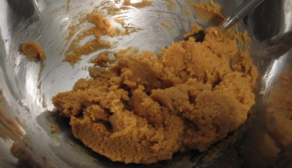 clean hands! make little balls and put on a well-greased cookie sheet, or on a parchment paper-lined cookie sheet. i, being lazy, used butter spray πŸ™‚ i do not recommend this, these little suckers like to stick.