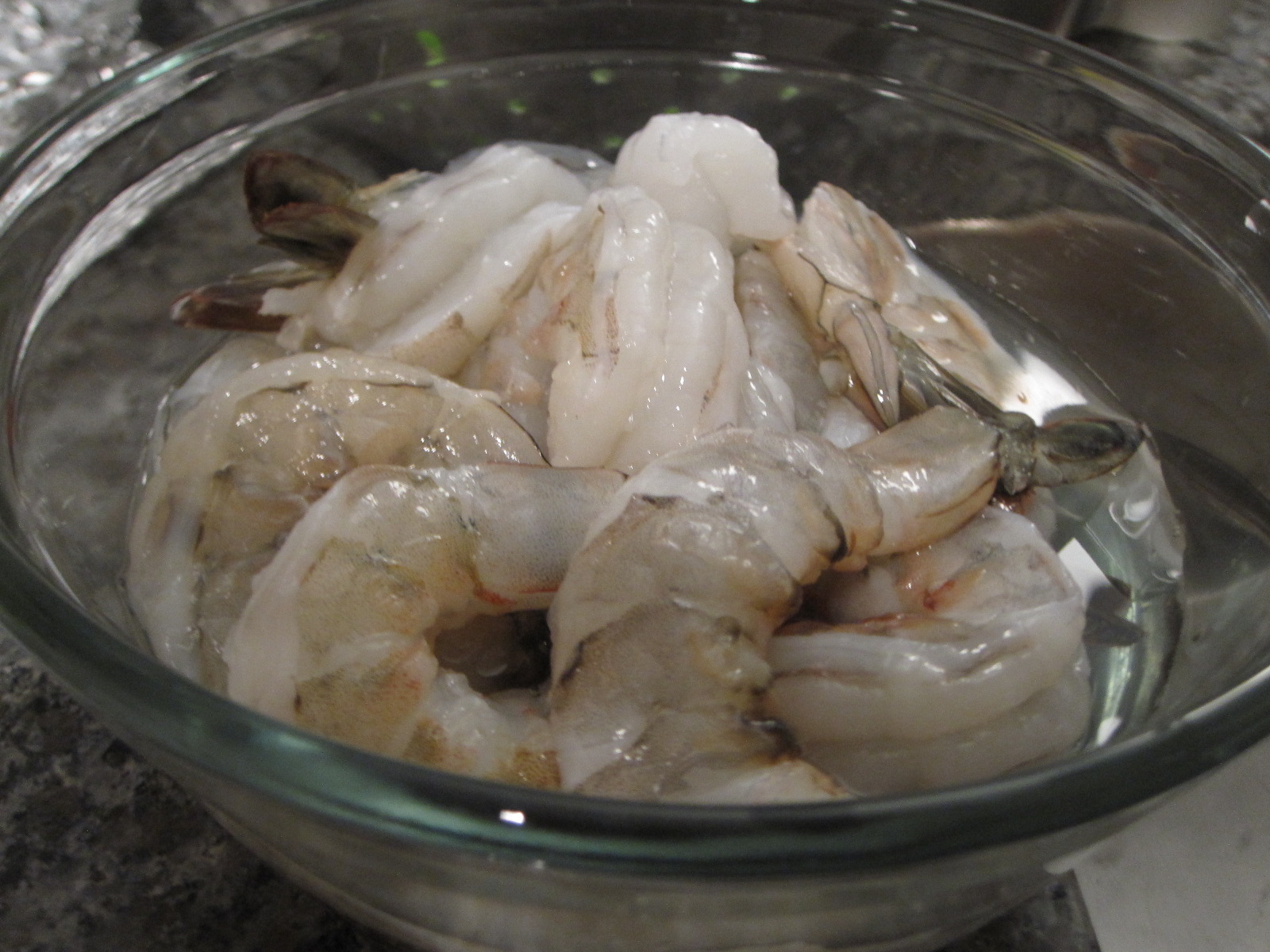 my friend picked up some HUGE shrimp from the fish market. we (well, he) had to shell, clean, peel and devein them, but you can buy them prepeeled and deveined and ready to go.