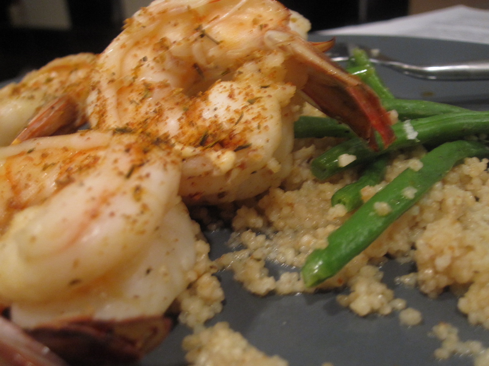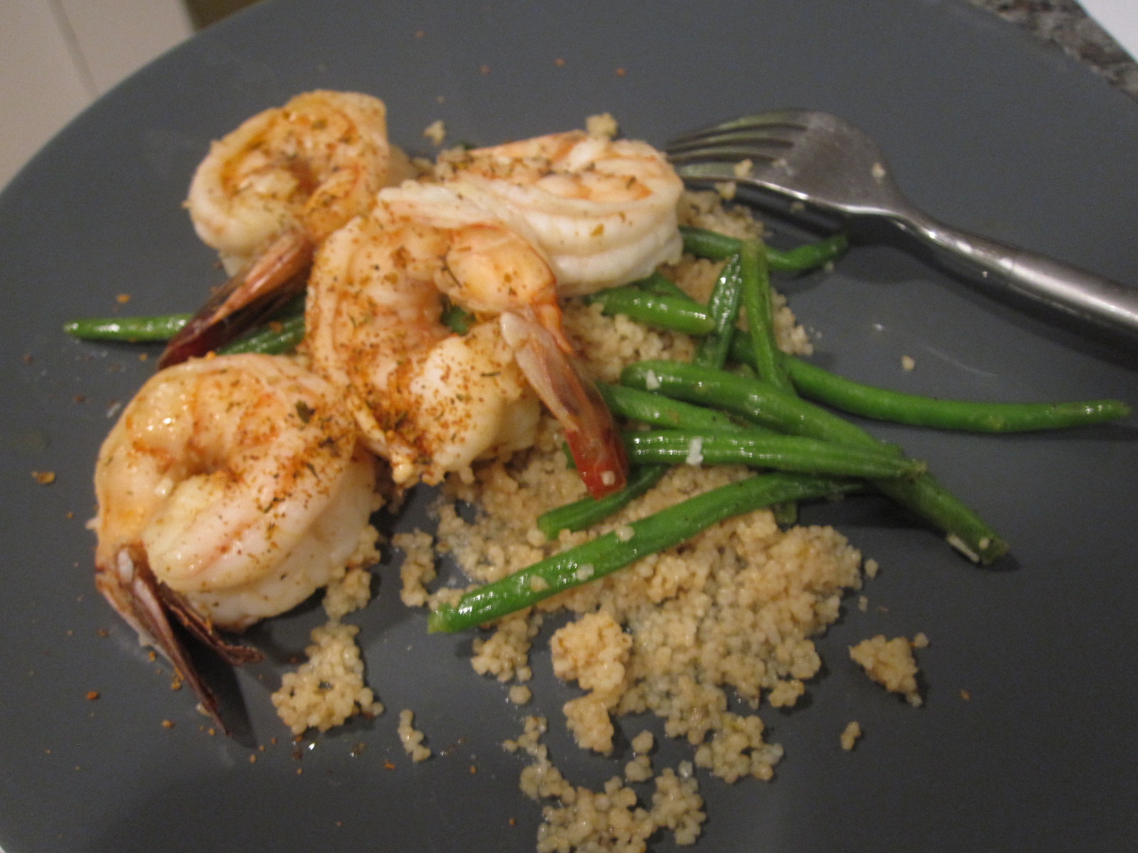 the lemon basil couscous and spicy cajun shrimp were actually a really good combo and complemented each other well. haricot verts to get your veggies/greens and for a bit of crunch. AND it was all done so fast!