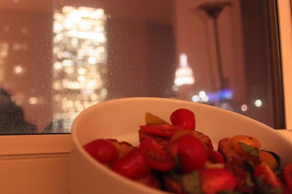 the same ol appetizer because heirloom tomatoes are BEAUTIFUL in the markets right now, penne alla vodka, and a cannoli cream dessert which i’ll post about separately.
